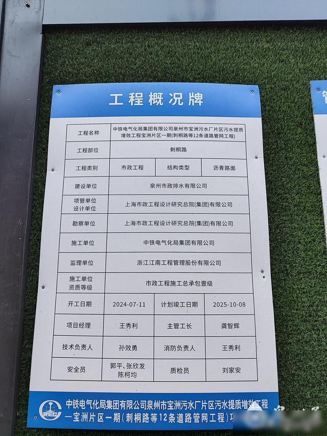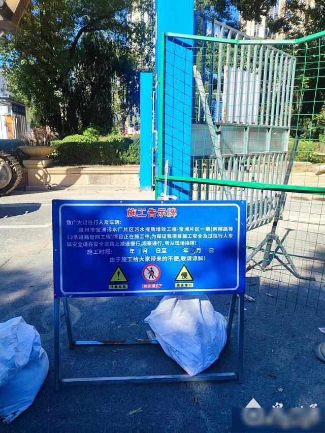 “上周看到刺桐南路有一段路面拆除了围挡,还铺上了沥青,以为整段道路都将陆续完工,没想到其余路段并没有完工的迹象。”陈先生表示,他每天都要驱车经过刺桐路,深受围挡施工困扰,对改造进展一直比较关注。他特别提到,施工方曾表示预计今年7月份,刺桐路主线两侧的工程施工就能全部完成。但是,在施工到刺桐南路(泉秀街至宝洲街)段时,施工进度受阻,施工方表示将顺延一个多月。到了9月,施工方又提出将按原工期计划到10月份完工,并且在施工告示牌上把完工日期改为“2025年10月31日”。施工现场放置的一块“工程概况牌”显示:泉州市宝洲污水厂片区污水提质增效工程宝洲片区一期(刺桐路等12条道路管网工程)开工日期2024年7月11日,计划竣工日期2025年10月8日。