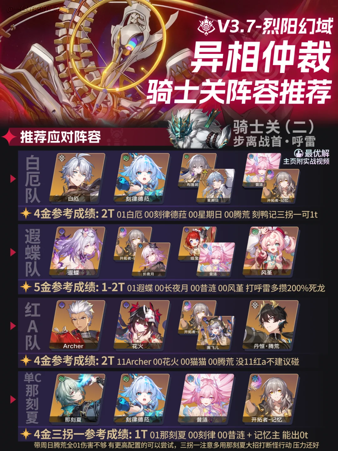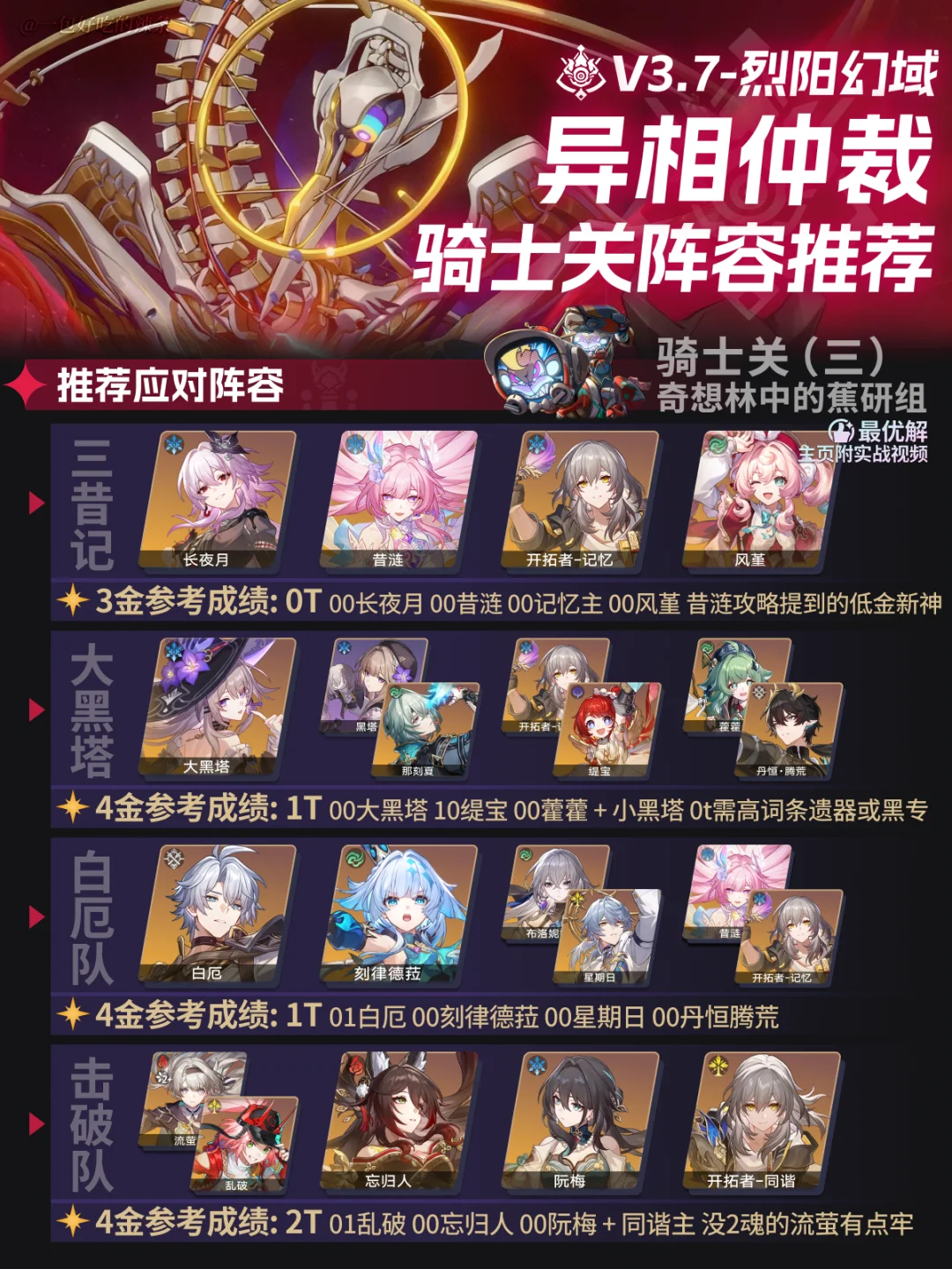 滴滴!这里是辣条 这期是异相仲裁的三骑士关阵容推荐 时间比较紧张,测试的阵容难免有遗漏 所以欢迎大家晒出你的阵容供其他小伙伴参考 - 三间骑士关都有容易出成绩的低金视频作业 -