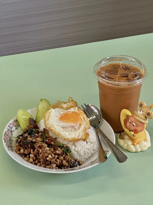 偶然刷到有點饞果斷衝 打拋飯加皮蛋第一口有被驚艷到 準備整理個珠海打拋飯合集敬請期待嘻嘻 - 🔎 泰磅打拋飯 🇹🇭 泰式打拋豬肉飯 🧋 手標泰式奶茶 -
