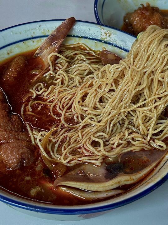 藏在街市裡的堅·平靚正 誰懂這一口麵的含金量呀 咖喱雞翼鳳爪魷魚buff疊滿 再配上凍的瓦煲奶茶快樂翻倍 - 📍 營地街市熟食中心 🔎 強記瓦煲奶茶咖啡 📎 泰皇咖喱 🔗 梓記牛什 -