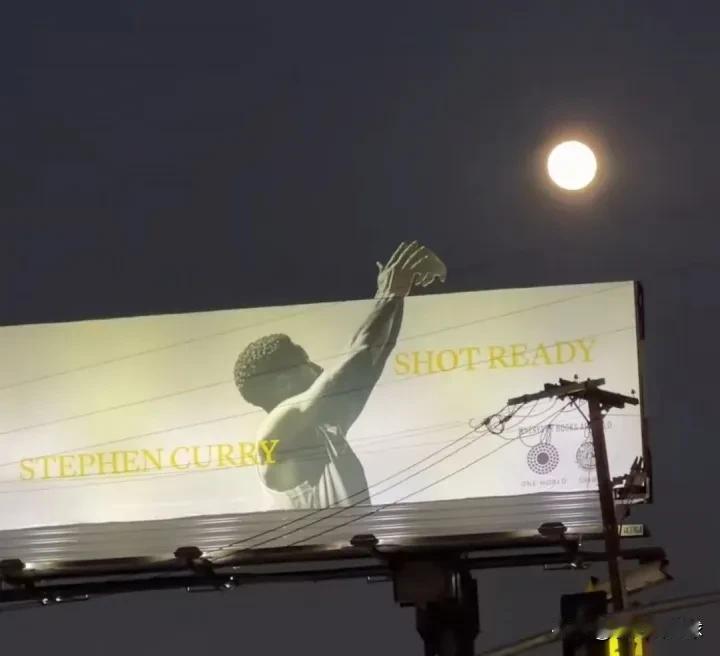 库射天!一直以来,球迷对于NBA历史级射手库里的赞颂不绝于耳,他全场无死角、高速率、高强度且极具抗压性的三分投射精力无数大战的考验,已经无需要用语言加以形容。那么如何才能将库里的投篮能力捧上新的台阶呢?美国人的一则广告给了球迷新的启示。 近期,美国洛杉矶街头出现了一个新投放的广告,内容是库里出手三分的标准动作,带有立体效果,但画面中没有篮球出现。乍看起来,这个广告平平无奇甚至有着缺陷,但是直到昨天满月之夜,当月亮在夜空中升单特定角度,与库里的出手方向形成完美弧线时,一副震撼人心的画面出现了:库里持月射天!整个天空都是库里的球场,月亮则是他投出的篮球,画面之美,创意之深,令人叹服! 接下来,类似的创意可能很快在全球被效仿推广,但无论主角是谁,都无法超越库里本人带来的震撼效果。以为逆天的库里,只有一个。斯蒂芬·库里 库里射月广告震撼人心