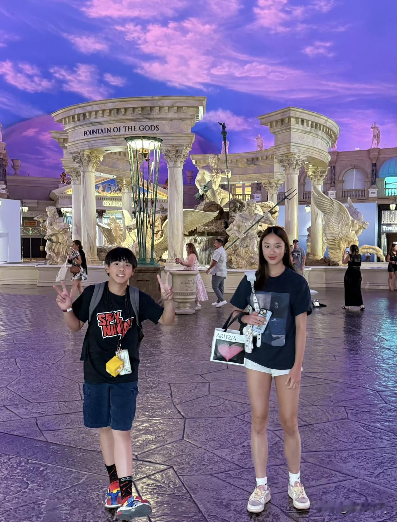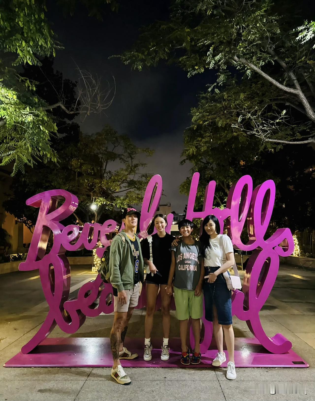 吴尊晒出全家游玩照,照片里他大方秀出结实肌肉,帅气又man;妻子则年轻貌美,气质