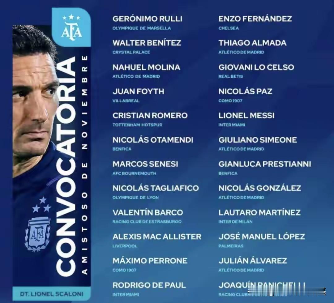 感谢斯卡洛尼,终于还是征召帕尼切利了。 虽然帕尼切利的高中锋打法和传统的斯卡洛尼“文化”不同,但是有他的存在完全可以丰富阿根廷队的打法。 可能是对当年巴蒂斯图塔的情怀,我一直希望阿根廷能出一个战斗力强大的中锋,包括前些年对阿道夫•盖奇的追捧都是这种情怀作祟。 帕尼切利在斯特拉斯堡的表现证明他是那种传统的大中锋,头球、抢点、做墙都是一流水平的。在梅老板不在场上时,或者比分落后和对手“玩儿命”的时候相信他都管用。 另外,后卫线上终于重新招募了塞内西,估计和他最近在俱乐部比赛表现回暖有关。有意思的是左右边后卫只招募了莫利纳和塔利亚菲科,虽然中场也征召了巴尔科,其实巴尔科在俱乐部几乎已经固定在后腰位置上了。估计没有征召左右边后卫的替补是因为这次没用国内球员,看来斯卡洛尼倾向于使用国内球员做边后卫的替补,估计大概率还是蒙铁尔和阿库尼亚。 这一期国家队另外一个亮点就是佩罗内的征召。佩罗内最近在科莫表现太好,攻守兼备。但是对他的征召只是保证提升球员的信心。在后腰这个位置上,阿根廷的选择简直是太多了,都几乎“成灾”了,都!