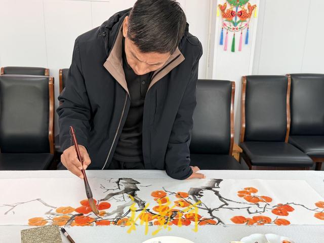 作为乡绣特色村,当天的活动还为三座楼村的乡绣产业带来了新灵感。在书画指导现场,不少从事乡绣的村民特意赶来,希望从艺术作品中汲取创作养分。“虽然我不太懂书画,但看着艺术家们画的花鸟、柿子,一下子就有了乡绣创作的新思路!”村民耿晓庆是村乡绣合作社的骨干,她拿着手机对着一幅柿子图反复拍摄,难掩兴奋,“之前我们在乡绣里加了‘白菜’‘荷花’这些有吉祥寓意的元素,现在看了这些画,觉得‘柿子’‘花鸟’也特别适合绣到作品里,肯定能受大家喜欢!更贴心的是,段主席说以后遇到设计难题,随时能联系他请教,有专业老师保驾护航,我们搞乡绣更有底气了!”
