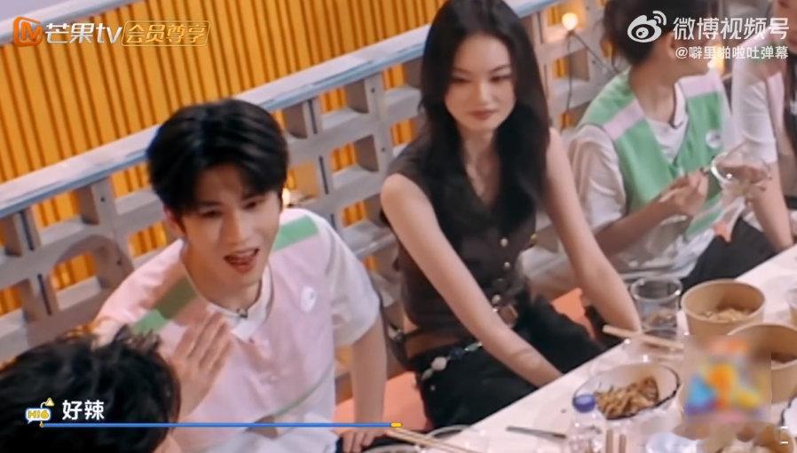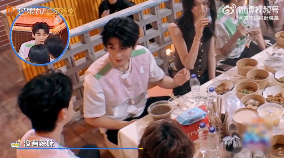 张凌赫不能吃辣又想吃的样子 你好星期六 饭桌上张凌赫被辣得手舞足蹈,边扇风边吐舌