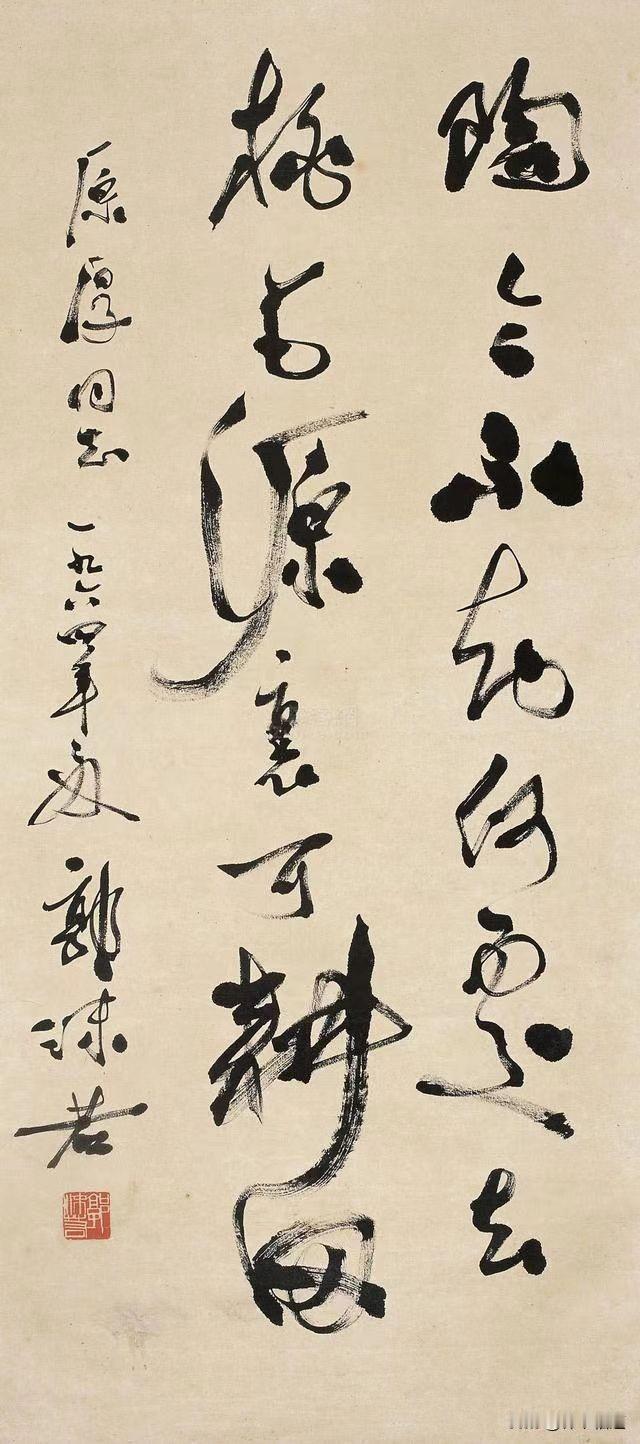 郭沫若先生的书法,有的人不喜欢,认为是老干部体,而如果仔细品味,其实是极有神采的,尤其是他题写的“故宫博物院”、“黄帝陵”、“中国银行”等大字,既有鲜明的个人特色,又兼具法度,蕴含传统韵味。 但郭沫若的这幅诗句书法“陶令不知何处去,桃花源里可耕田”,却大失水准,结体随意,点画轻率。特别是“处”、“源”、“耕”等字,一些笔画飘浮无根,任笔为体,既无美感,又不合规范。 或者,这是应酬之作吧,即使是大书法家,也有写不好的时候。各位书友,你怎么看?