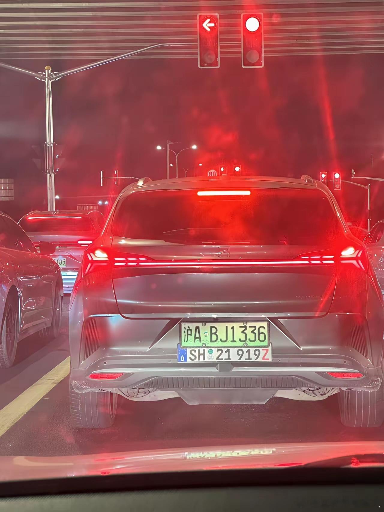在上海南北高架看到辆电车挂了两个牌子,头回见这情况。有人知道这挂俩车牌是啥意思不