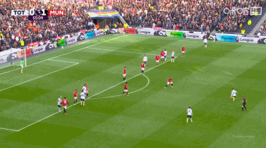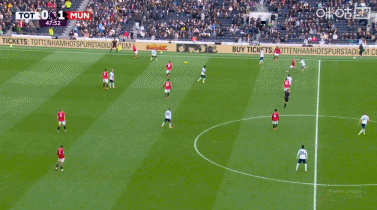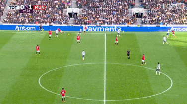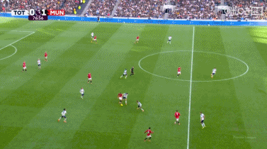 第32分钟,热刺禁区内解围失误,库尼亚抢断后脚后跟做球给多尔古,多尔古传中,姆伯莫头球没顶好,随后球过渡到右路,阿玛德再起球传中送到后点,姆伯莫头球攻门得手,曼联1-0热刺。↓