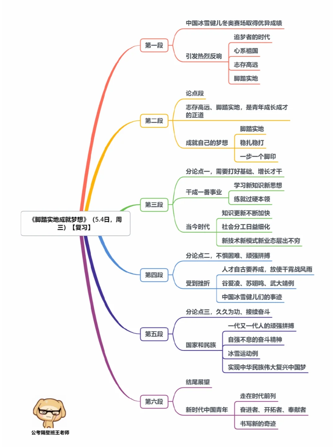 本周我们又学习了4篇人民日报申论范文,分别为: 1.《办好“小微”实事 对接群众需求》(5.3日,周二) 2.《脚踏实地成就梦想》(5.4日,周三) 3.《整治形式主义,规范网络评比》(5.5日,周四) 4.《以人才活力续写“山海情”》(5.6日,周五) 今天,我们就总结学习一下里面的“万能结构”。 每篇文章的详细讲解请回顾本周视频。 ⭐️ ⭐️ ⭐️ ⭐️ ⭐️ ⭐️ 这里是公考隔壁班王老师独创的“每天半小时 申论80分”抄写团,欢迎加入我们!