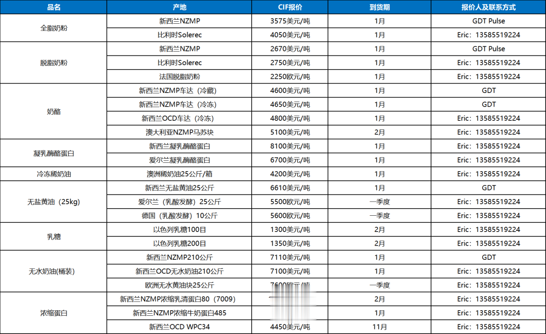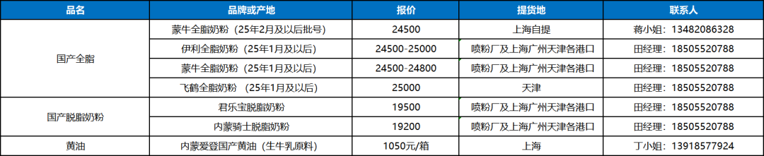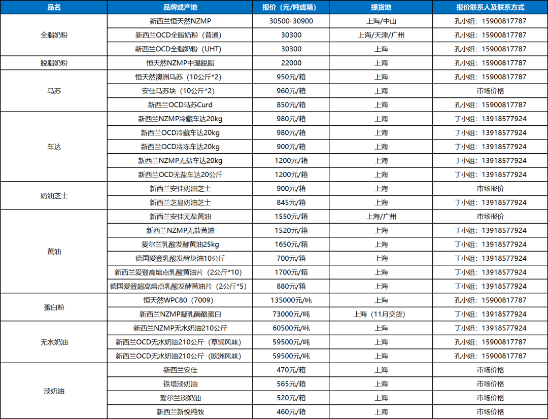 现货行情第45周|需求低迷国产全脂降价,爆品拉动无水奶油上涨