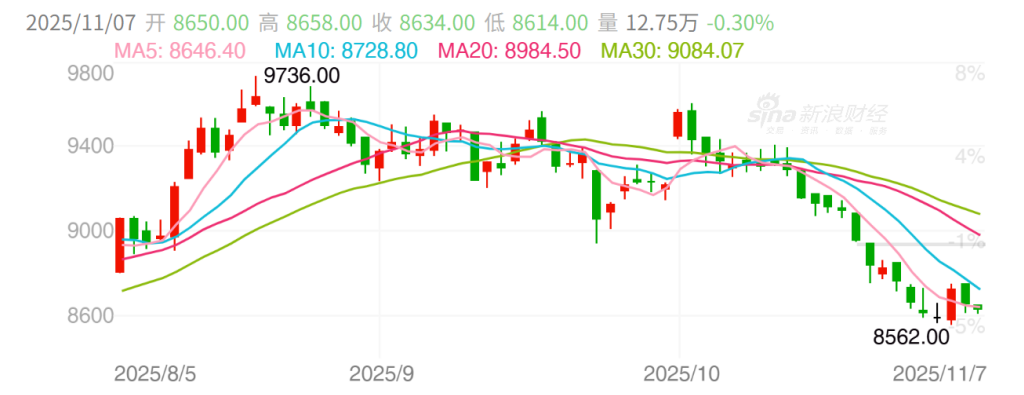 1.中国经济数据:(1)统计局公布GDP:前三季度国内生产总值1015036亿元,按不变价格计算,同比增长5.2%。其中,一季度同比增长5.4%,二季度增长5.2%,三季度增长4.8工业增加值:前三季度,规模以上工业增加值同比增长6.2%,其中9月份同比实际增长6.5%。固定资产投资:前三季度,全国固定资产投资(不含农户)371535亿元,同比下降0.5%。社会消费品零售总额:前三季度,社会消费品零售总额365877亿元,同比增长4.5%,其中9月份同比增长3.0%。(2)据对全国流通领域9大类50种重要生产资料市场价格的监测显示,2025年10月下旬与10月中旬相比,26种产品价格上涨,22种下降,2种持平。有色金属和煤炭普涨,除硫酸外的化工产品普跌,农产品涨多跌少,生猪反弹迅猛。