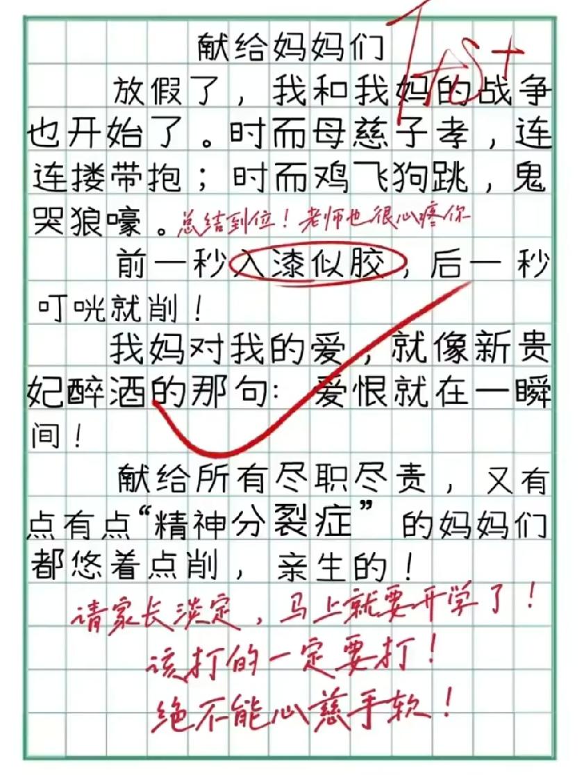 放假和妈的日常:时而母慈子孝,时而鸡飞狗跳…这作文说出多少娃的心声?