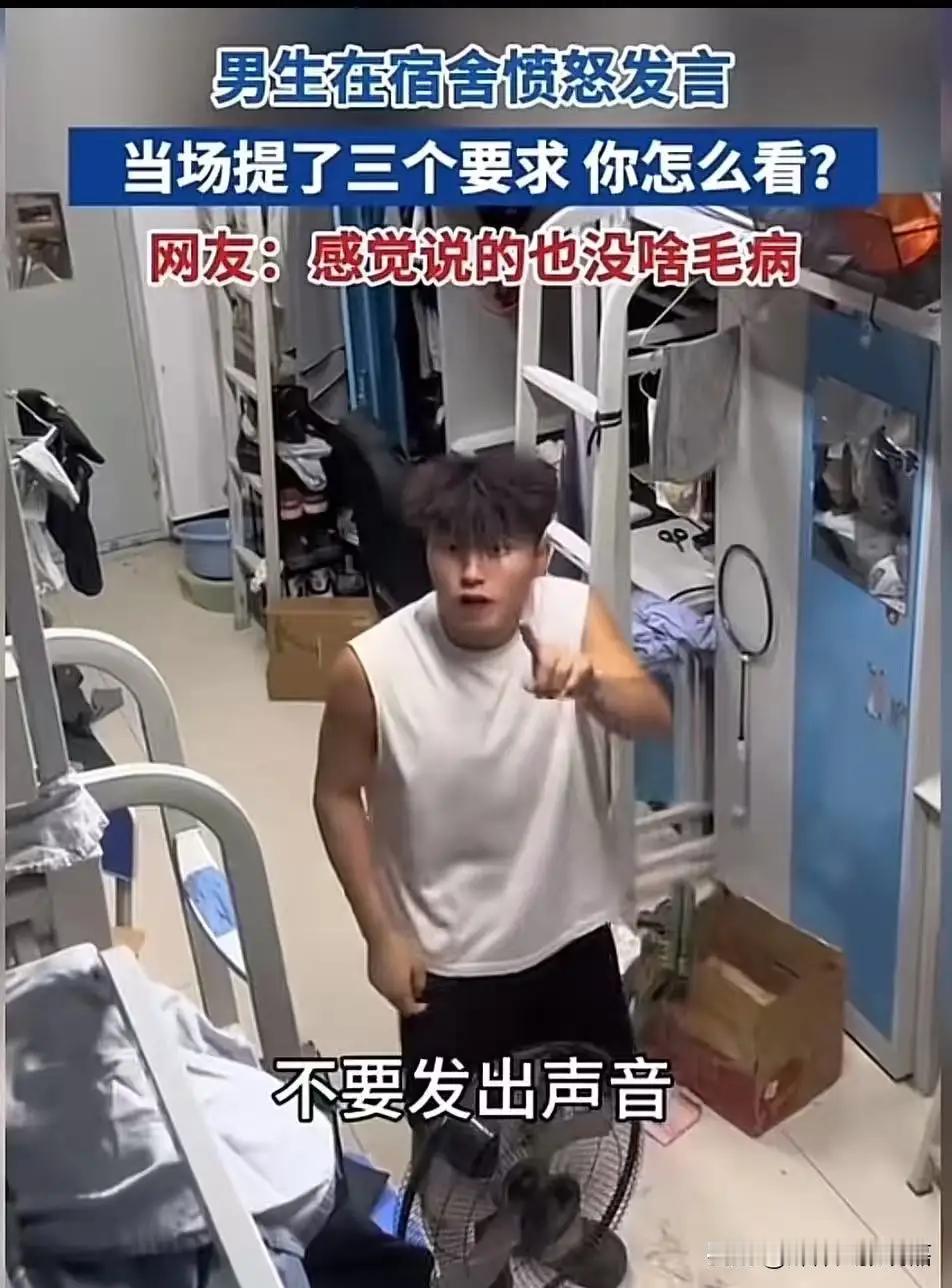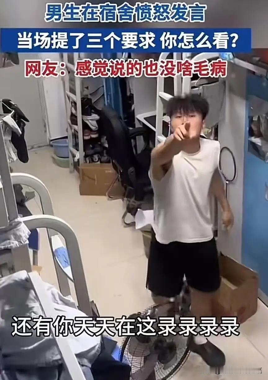 吵翻了!男生在宿舍发飙,突出三个要求,让室友必须做到!室友觉得男生的要求不合理,转身把视频发到网上,这下网友炸锅了! 一场原本平凡的宿舍争执,竟然演变成了网络热议的“焦点大战”。男生怒气冲冲地站在宿舍中,声音高得几乎要掀翻天:“我说三件事,你们必须做到!第一,不要在我房间抽烟,抽就出去抽,别让我看见也别让我闻到!第二,晚上11点半以后,别再发出任何声音——不打游戏,不打电话,连说话都要用耳机,吵到我休息,我就翻脸!第三,未经我允许,别动我的东西。我的纸巾才买了两天,剩一卷就少了,你们谁拿了都得告诉我,否则别怪我翻脸!”说完,他的脸涨得通红,似乎要用这些“铁律”把室友都管得死死的。 然而,事情的发展远比他预料的要复杂。室友们听完后,纷纷皱眉,觉得这些要求“太过分”了——他们也有自己的生活习惯,怎么能被这么“强制”呢?有人甚至觉得男生太霸道,把这些“规矩”硬性要求强加给别人,完全没有考虑到室友的感受。于是,一个室友转身,将整个对话录像发到了网上,配上了自己的评论:“这就是所谓的‘合理要求’?太可笑了!这宿舍要变成他的专属地盘了吗?” 视频一出,立刻引爆了网络。有人支持男生,觉得“生活需要规则,谁都不能随意打扰”;也有人站在室友一边,认为“尊重和理解才是良好相处的关键”。更有人开始反思:这背后折射的,是现代年轻人对“个人空间”的渴望,还是一种“自我中心”的表现?或者,是我们这个时代“沟通”与“尊重”缺失的缩影? 从表面看,这只是一场宿舍里的小冲突,但细细品味,却隐藏着深刻的人性洞察。每个人都希望被理解,期待自己的生活方式得到尊重,但当“规则”变成“强制”,又会激起多少人的反感?这场争执其实是在试探:我们在集体生活中,究竟该如何平衡“自我”和“他人”的空间?如何用沟通代替冲突,用理解化解矛盾? 值得一提的是,网络的放大镜让这场“宿舍风暴”变得更加激烈,也让我们不得不面对一个现实:在快节奏、个性化的时代,人与人之间的边界到底该怎么划定?是“硬性规定”,还是“柔性理解”?答案或许都在我们每个人的心里。 这场争执还在继续,但它提醒我们:生活中没有绝对的对与错,只有不断调整的“共处之道”。也许,下一次当你觉得对方“太过分”时,不妨试试换位思考,或许你会发现,彼此的距离可以更近一些,理解可以更深一些。毕竟,生活的真谛,不就是在不断的包容和沟通中,找到那份难得的和谐与温暖吗?头号周刊 宿舍讨厌行为