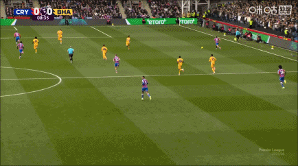 上半场补时1分钟,水晶宫0-0布赖顿。
