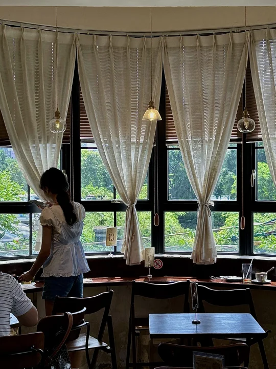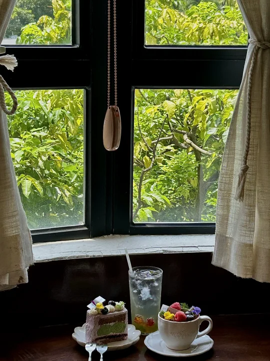 久違的好天氣當然要坐窗邊呀 會為了這扇窗來789次(雖然已經遠不止了 - 窗外綠意彌漫暑氣依舊 每一個夏天都是最好的夏天 - 🔎 今日餉処 🫐 藍莓抹茶可麗卷奶糕 🫖 茶杯提拉米蘇 🍈 蜜瓜波妞 -