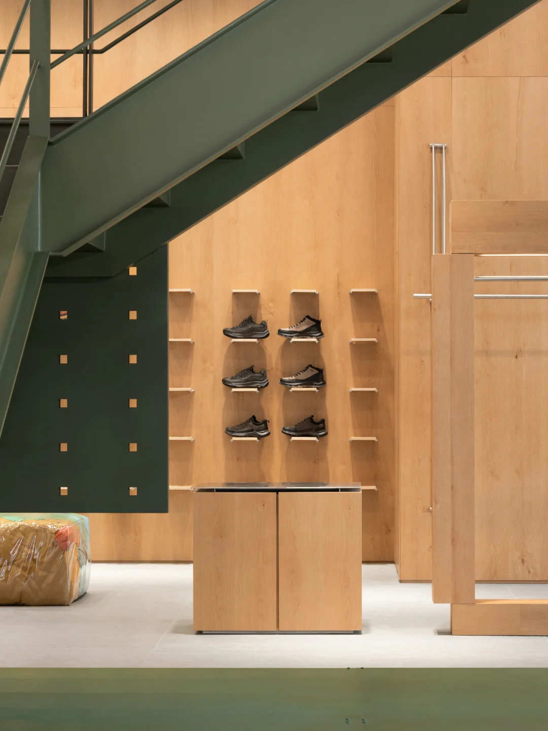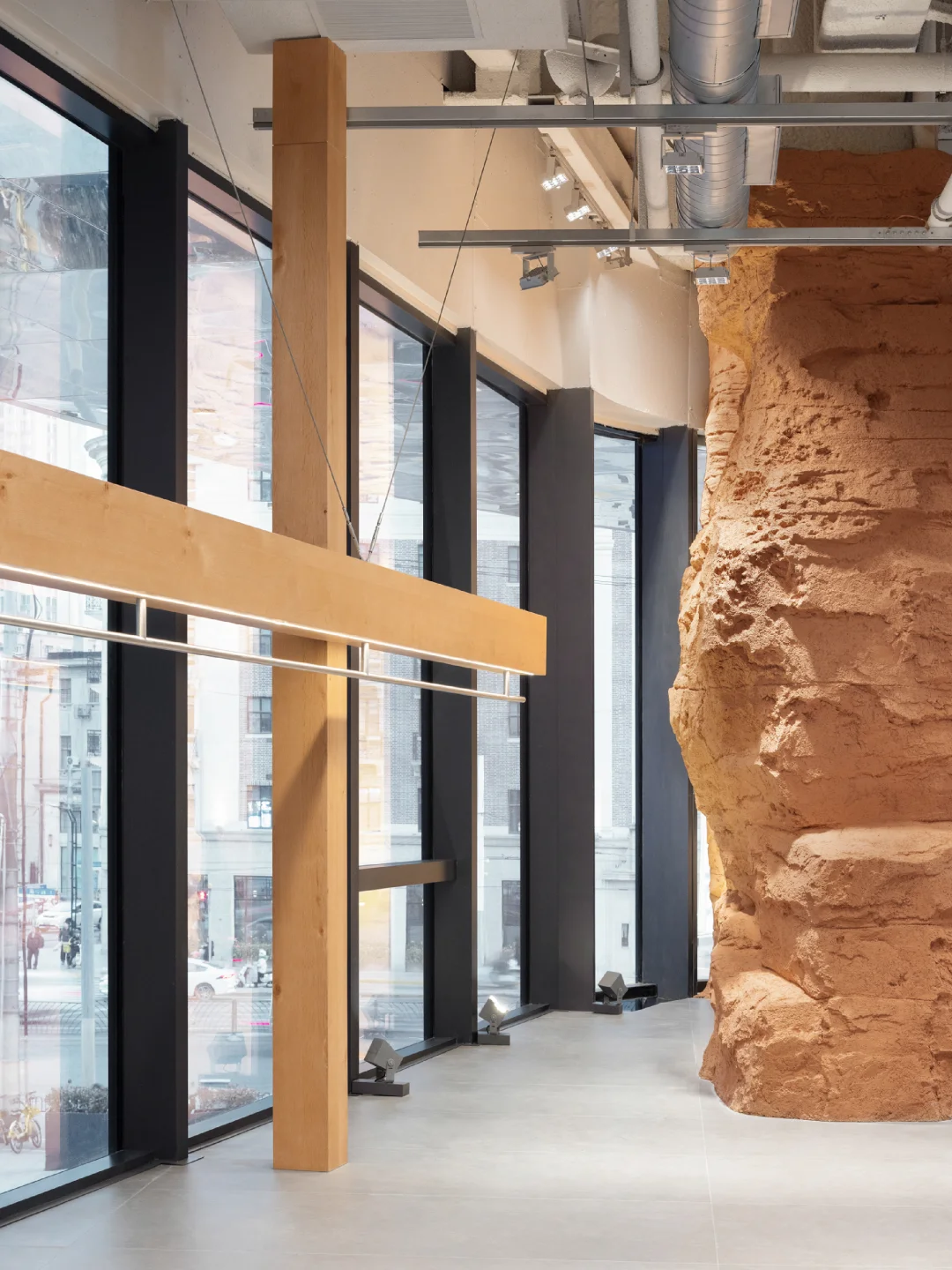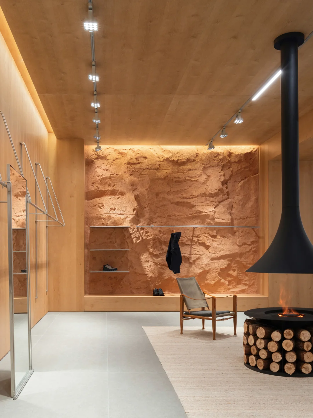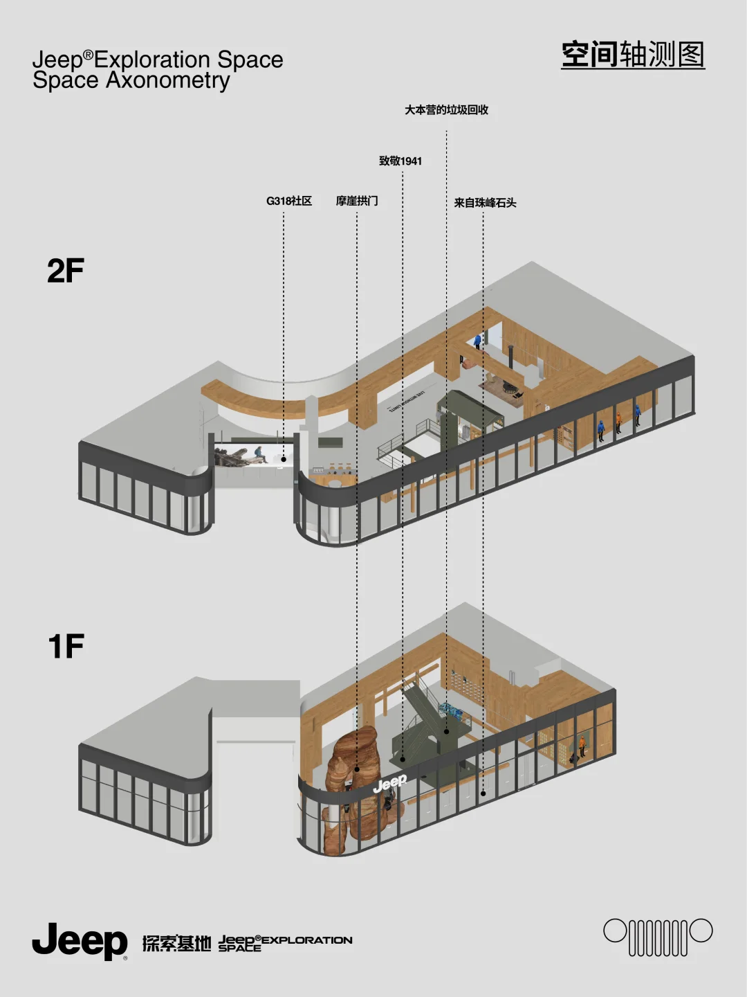 🏕️坐落于上海虹口,Jeep®品牌概念空间以“探索”为核心,从地貌语言、材质系统到空间路径的设计,构建出具象的体验场景。 设计团队将品牌精神拆解为三种探索维度:自然的、生活方式的、产品可塑性的。 🏕️ 入口是模拟Moab岩石拱门的结构,把科罗拉多高原的野性带进了上海的城市节奏中;军绿色金属楼梯、裸露的工业骨架、温润的原木陈设,构成了一场自然与工业的对话。 ♻️ 二层座椅使用了回收的帐篷、睡袋、冲锋衣手工制成,延续品牌对户外文化的尊重与再利用思维。这种从珠峰回收而来的材料为空间注入了真实的探险经验,也体现品牌对生态议题的长期关注。 🏕️ 空间不只是产品的展示场,更是连接用户与生活方式的节点。二层设有咖啡区、旅居产品区与开放式的文化活动空间,未来将承载更多自驾社群的交流活动,激发城市中“出发的念头” 🗺️⛰️ 项目:Jeep®上海探索基地 设计:摄影:云眠 设计灵感 空间设计 设计案例分享 商业空间 户外爱好者天堂 户外新风尚 探迹山野自在开场 商业空间设计 户外