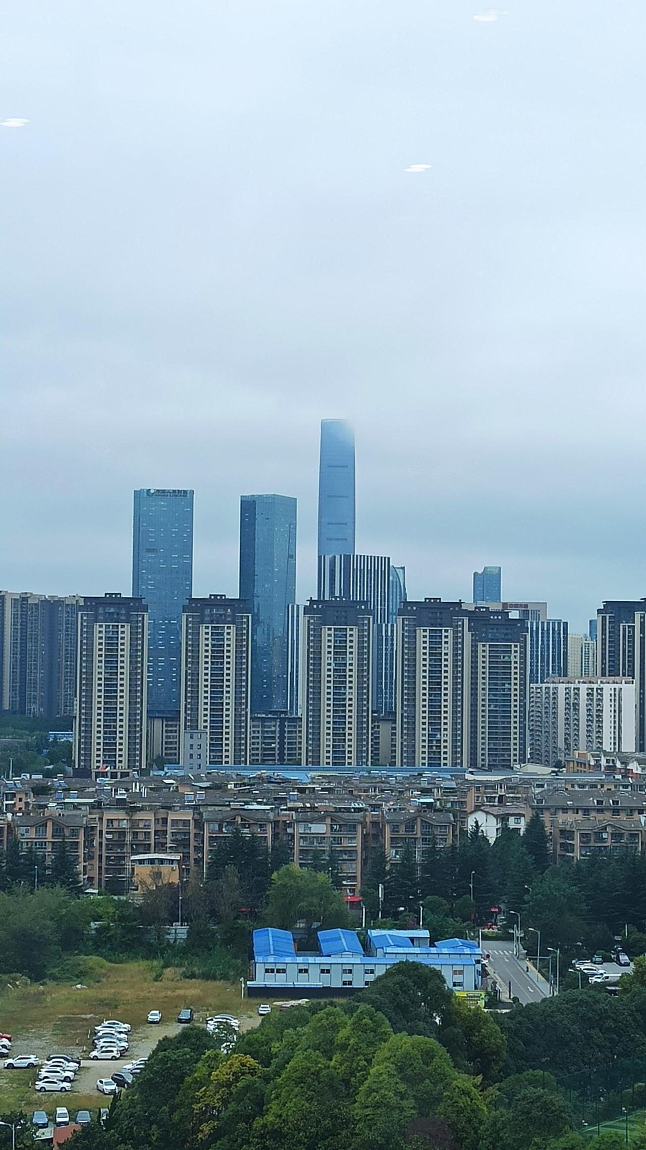 401后贵州再无摩天大楼!清晨开起汽车行驶在公路上,还未进入观山湖区,首先映入眼帘的就是那高耸入云、高过远处山峰大半截身子的金融城401大厦。如果是没有一抹云彩的晴天,你会看到他整个身子,如果是多云天气,你将会看到他一半躲在云里,一半在空中、还有一半藏在山背后;如果是阴雨天气,那就更奇妙了,基本上是一半藏在山后,一半躲在云里,还有一半穿梭在雾中,大有雾里看楼云中望厦的奇景。这座高达401米的大楼可以说算得上是观山湖区、贵阳市、甚至贵州省的标志性建筑了,他诞生于贵州金融政策、引金银入黔的背景,在那高楼大厦相互竞速如雨后春笋般冒起来的年代,但基本上也是贵州最后的高楼了;同期未来方舟的540米世贸大厦因为离机场太近未能通过改成380米后烂尾了,后来的文化广场520米文化大厦更是遇上国家高楼刹车政策而停摆后将规划改成住宅至今也未能动工。可以说401米的金融大厦是贵州的最高楼,也是最后的高楼了,也许有人会说花果园的双子塔更高,但前期建筑和规划只有380多米,至于后期没有具体的考证。所以说401后,贵州再无摩天大楼了。