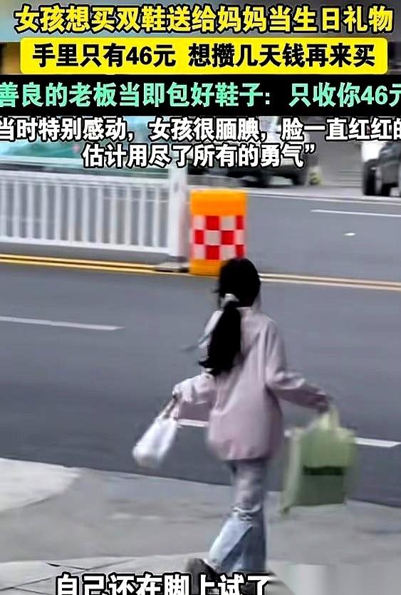 “姐姐,有我能买得起的鞋吗?” 就这一句话,听得人心都揪起来了。 一个十几岁的小姑娘,手里攥着46块钱,是她从牙缝里、从早餐钱里一点点省出来的。她想给在餐馆打工的妈妈买双舒服的鞋,因为妈妈站得太久,脚总是疼。 她来店里看了四次,每次都只敢在门口偷偷看,不敢问。 说实话,这世上最贵的,从来不是商品的价格,而是一个孩子小心翼翼捧出来的孝心。 老板娘心里门儿清,那双鞋最低也要75,但她什么都没说破。 她没有居高临下地说“送你”,也没有故作姿态地“打个折”,那都会像一根刺,扎伤小姑娘的自尊。 她就那么自然地接过那46块皱巴巴的零钱,说,“够了,拿去吧。” 然后,把鞋子装好,还偷偷在袋子里塞了一双软和的鞋垫。 这事儿妙就妙在这里。 真正的善良,不是一场自我感动的表演,而是不动声色地,维护了另一个人的体面。 你以为故事就完了? 第二天,女孩的妈妈来了。她没带钱来“补差价”,那太见外了。她提着两把自家阳台种的菠菜,叶子上还挂着水珠,新鲜得不得了。 她说,孩子平时内向得不行,谢谢你,这点菜你尝尝鲜。 你看。 你用温柔成全了我的孝心,我用我最质朴的收成,来回报你的真心。 这根本不是一次买卖。 这是一场人与人之间,最温暖的“礼尚往来”。 我们天天在网上吵架、看戏、围观各种抓马,都快忘了,在看不见的角落里,生活本身,其实是有温度的。 这种不言而喻的默契,这种你来我往的真诚,比任何轰轰烈烈的故事,都更能一瞬间击中你的心脏。