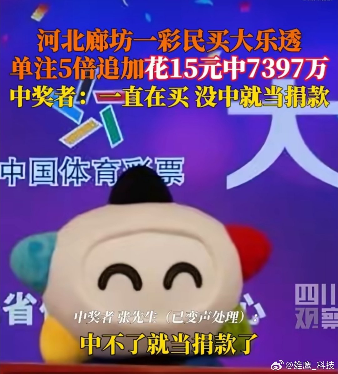 廊坊一彩民花15元中7397万大奖 平常心,没事就当玩,这心态是最正确的。