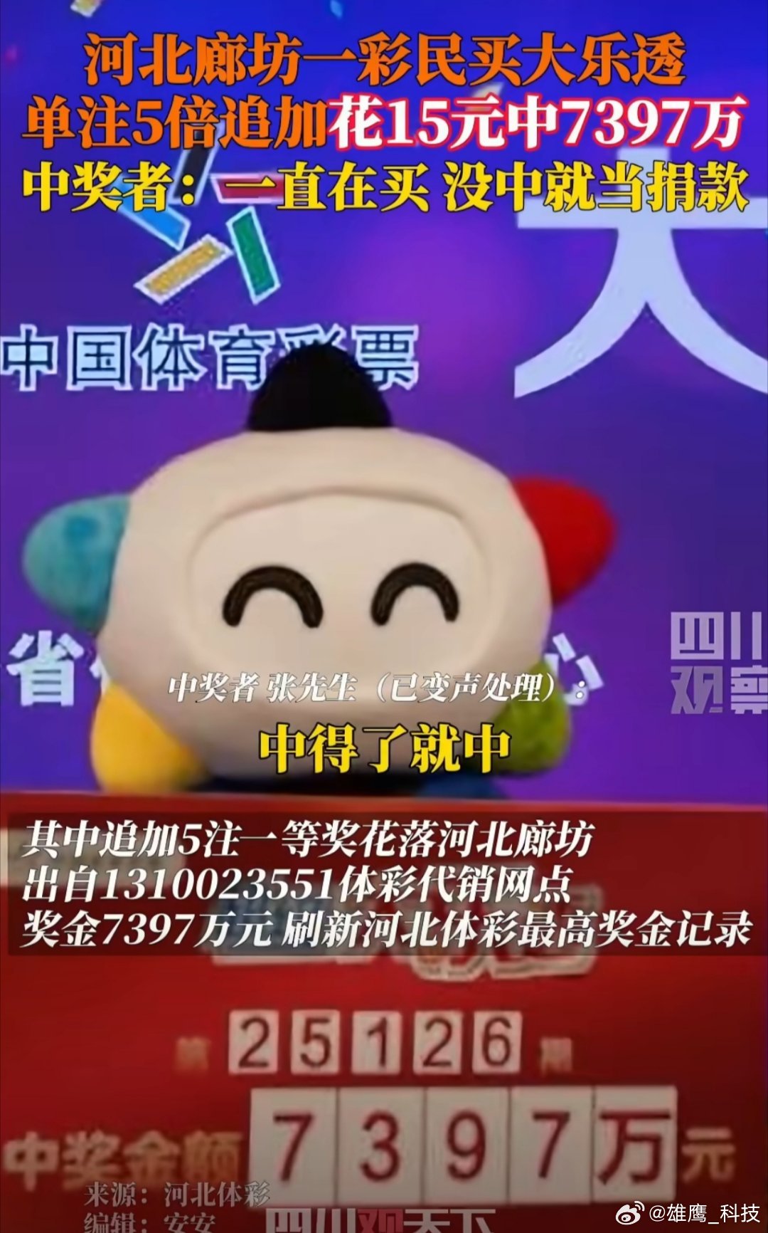 刚抓完彩票主任,就出7000万大奖?这操作我直接看懵!河北一彩民坚持每期