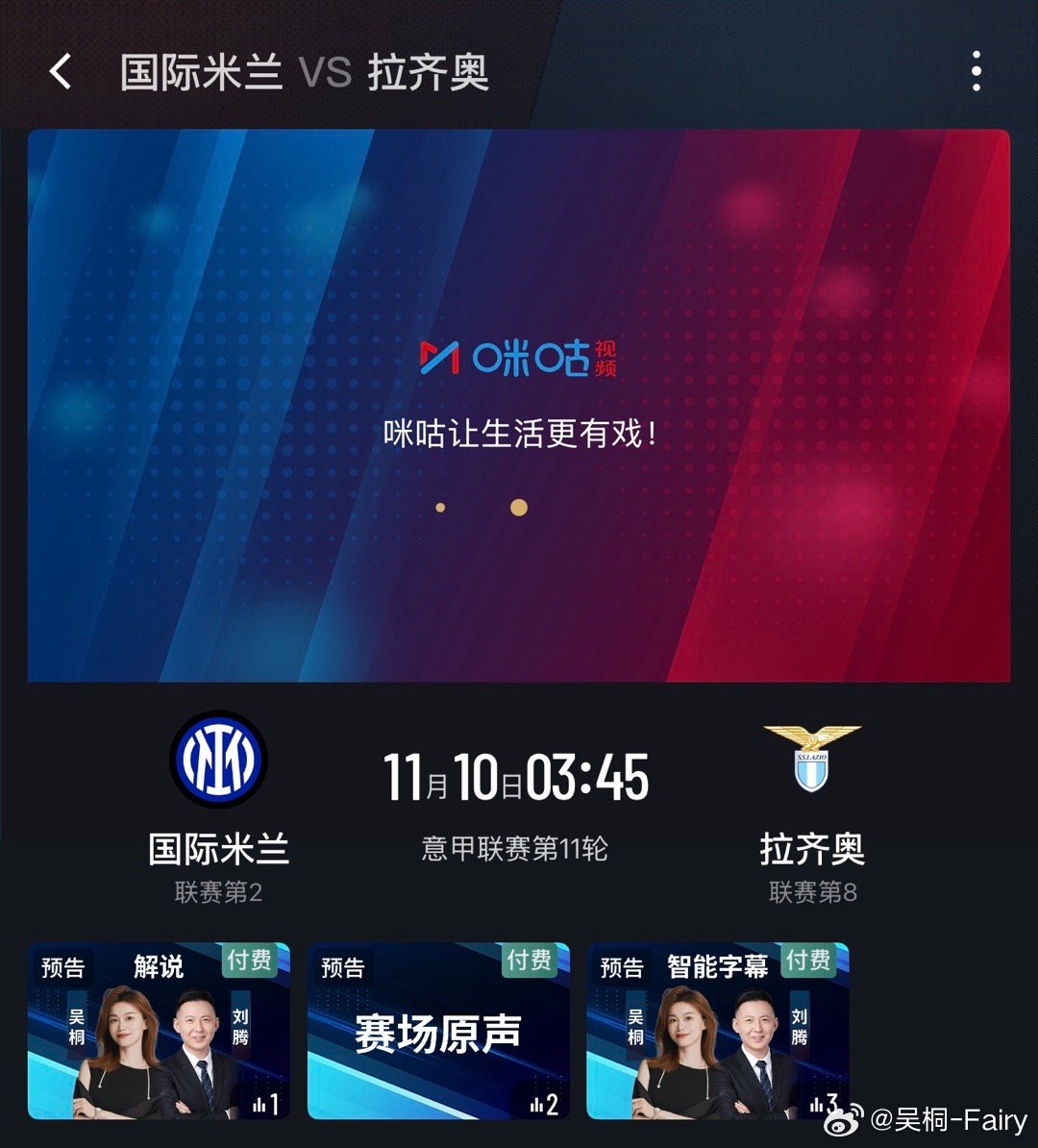 周日27:15意甲 国际米兰vs拉齐奥,搭档刘腾
