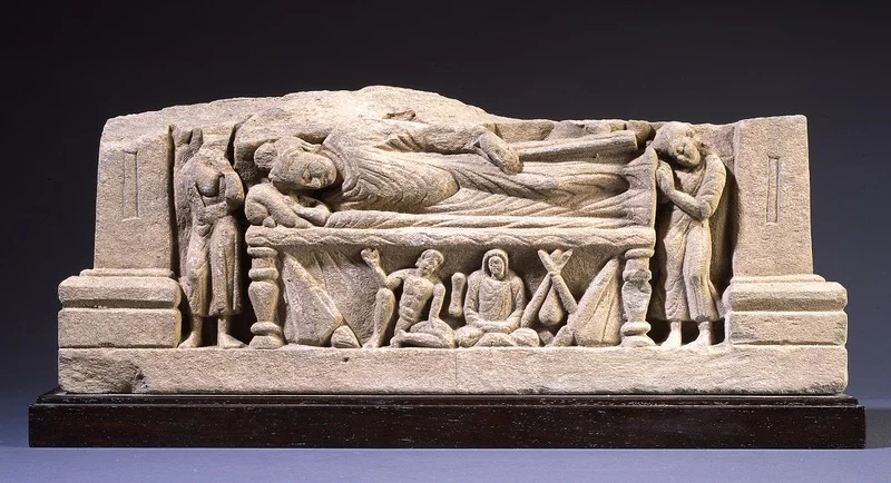 日本龙谷大学收藏的2-3世纪犍陀罗雕刻,燃灯佛说法和佛涅槃