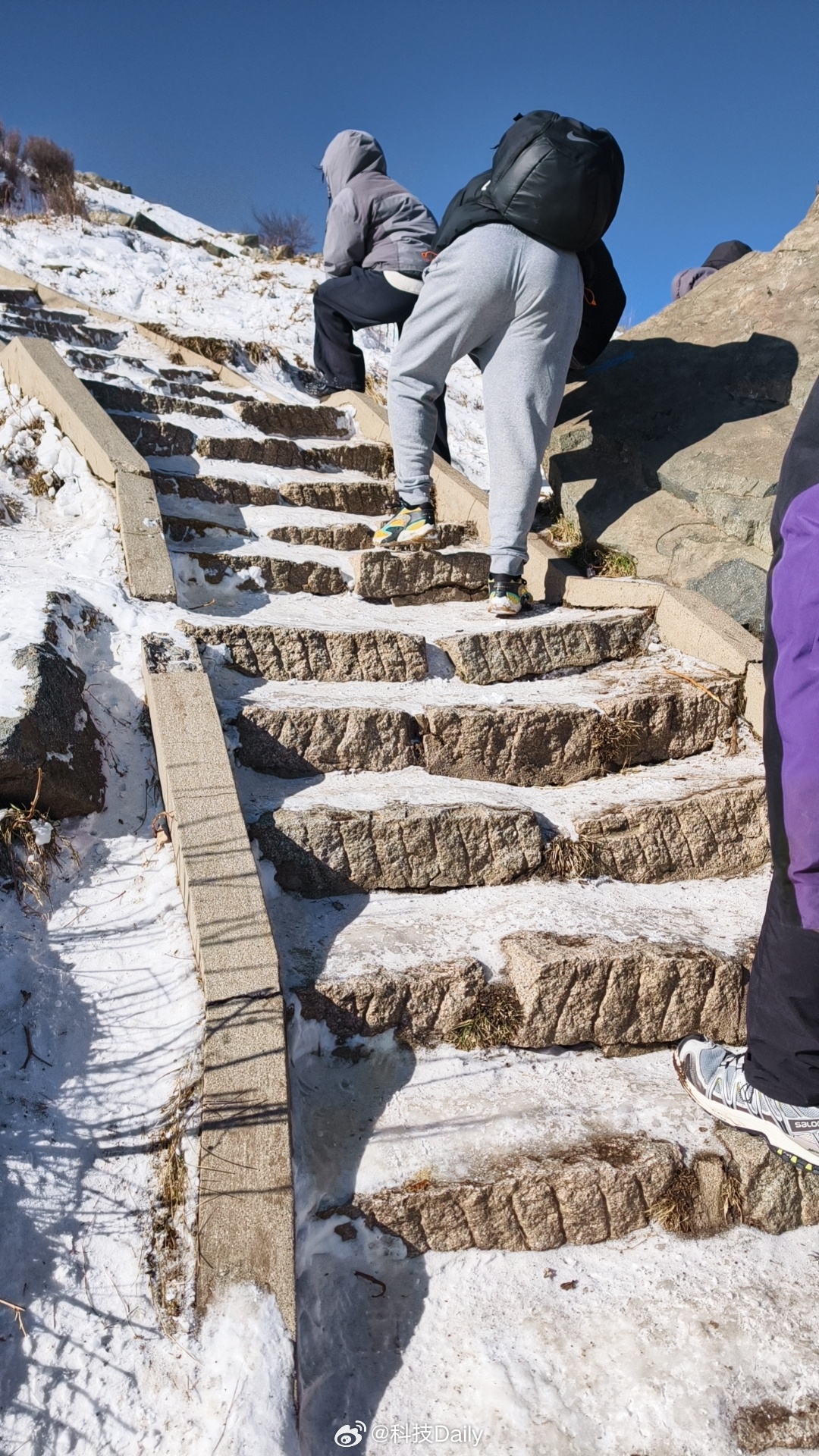爬山一定要做好攻略,昨天能爬东灵山顺利登顶主要是靠冰爪,很多人爬带冰的台阶,跌倒