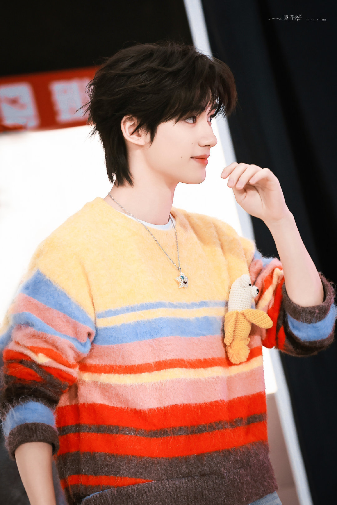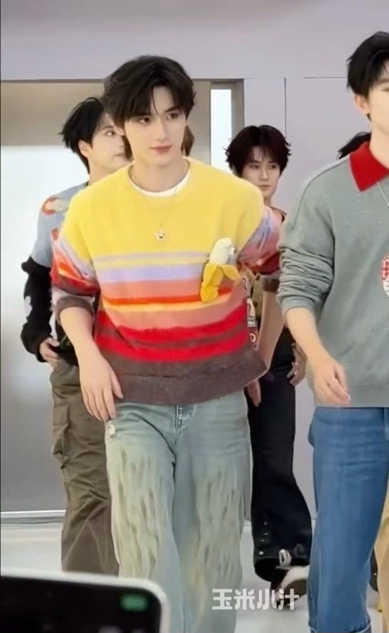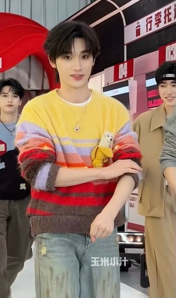 身穿 CHEERi UPi 2025秋冬系列香蕉熊套头毛衣亮相,将晚霞穿上身,秋日少年的浪漫腔调~🌅好六夜红毯