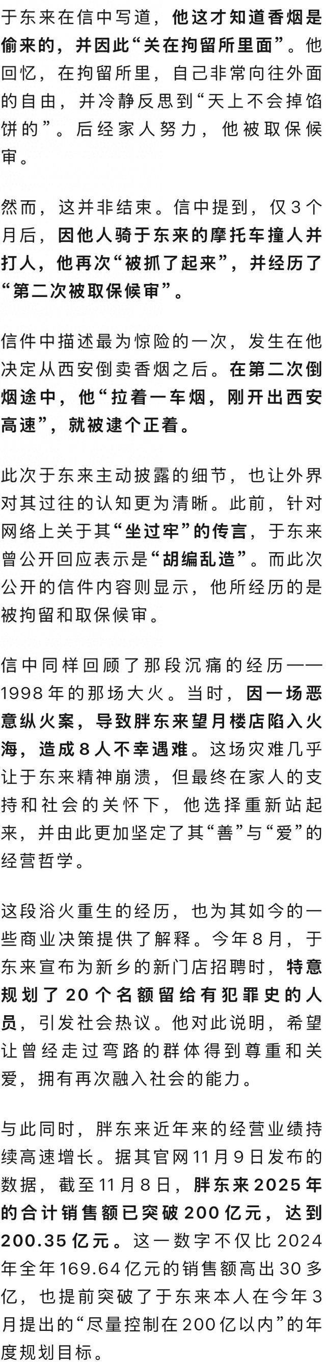 于东来公开20年前内部信:卖过冰棍当过黄牛,详述倒卖香烟经历,曾被戴手铐拘留,还曾因门店火灾致8人遇难事故精神崩溃