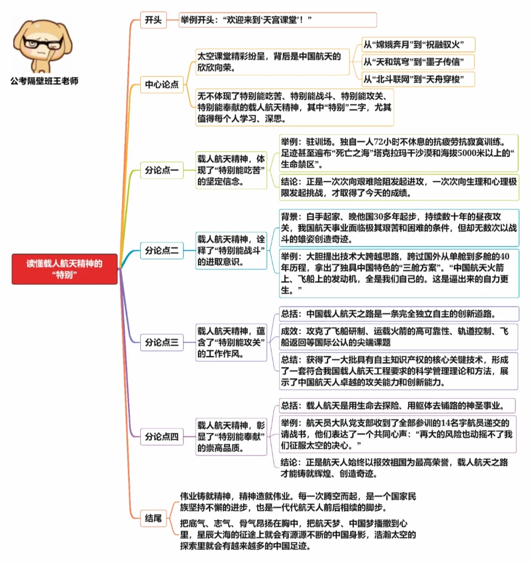 本周我们跟着人民日报学了五篇申论范文,分别是: 1.《读懂载人航天精神的“特别”》 2.《激活乡村发展潜力》 3.《公共文化服务需要“精准供给”》 4.《“致广大而尽精微”是成事之道》 5.《让数据安全托起美好数字生活》 下面,就让我们盘点一下这些范文的“万能结构”,温故而知新,学习效果自然不同。