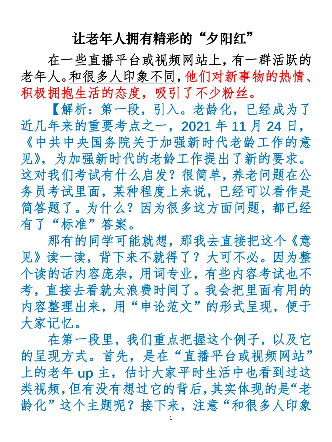 今天,我们一起学习这篇《让老年人拥有精彩的“夕阳红”》,关心我们身边的老人,也是关心我们的家人、我们自己的未来。