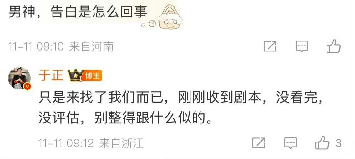 于正回应告白剧本问题 于正回应《告白》相关问题啦!看来具体情况还是得等官宣!