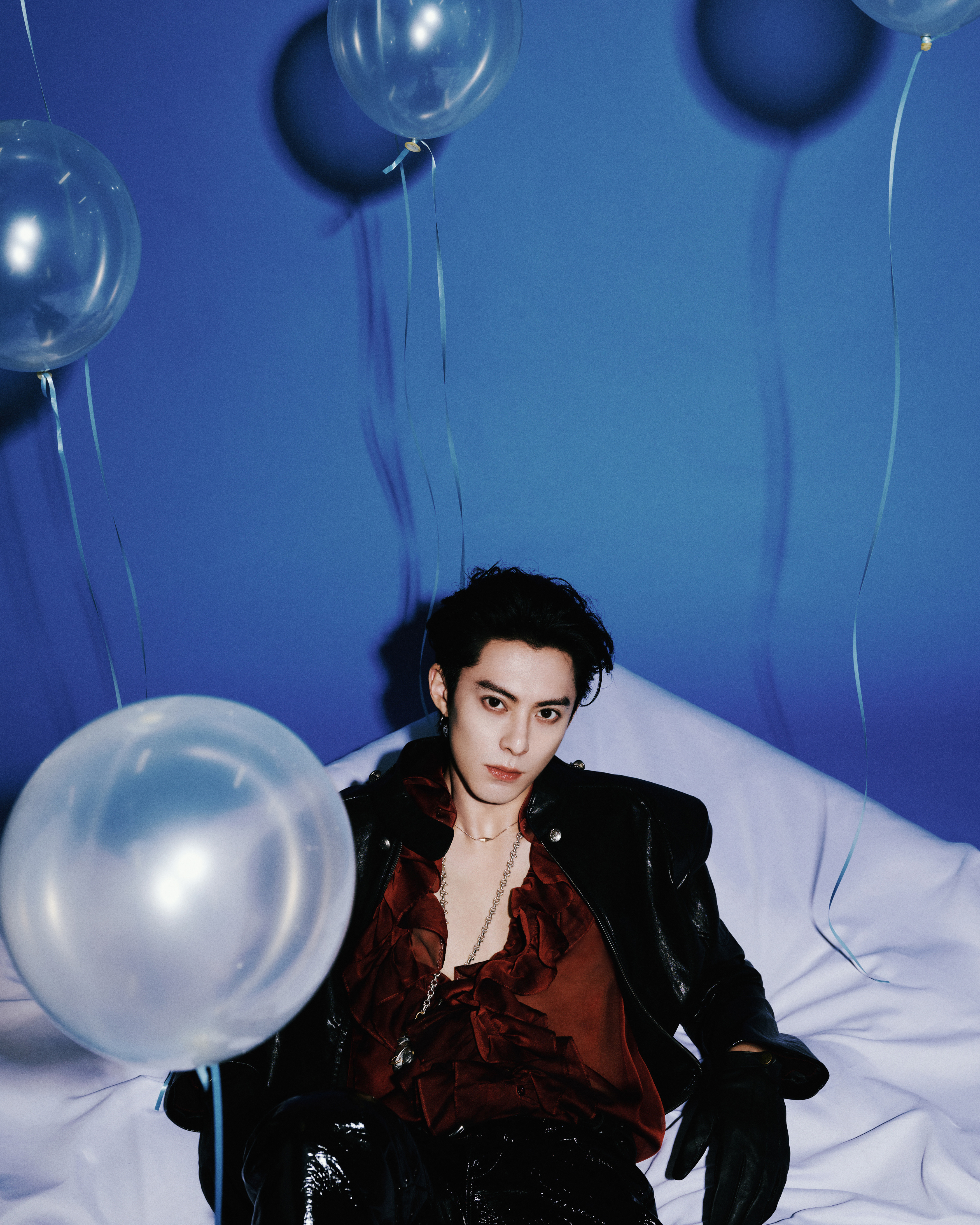 王鹤棣 × 双11疯狂好六夜 今日疯狂好六夜造型大片,黑色皮革机车夹克内搭酒红色