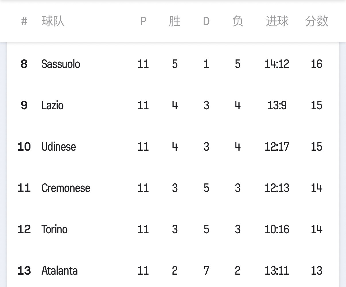 8-13就是中游搅局区,图二:6个队,米兰踢了3个,1主2客,成绩1胜1平1负。