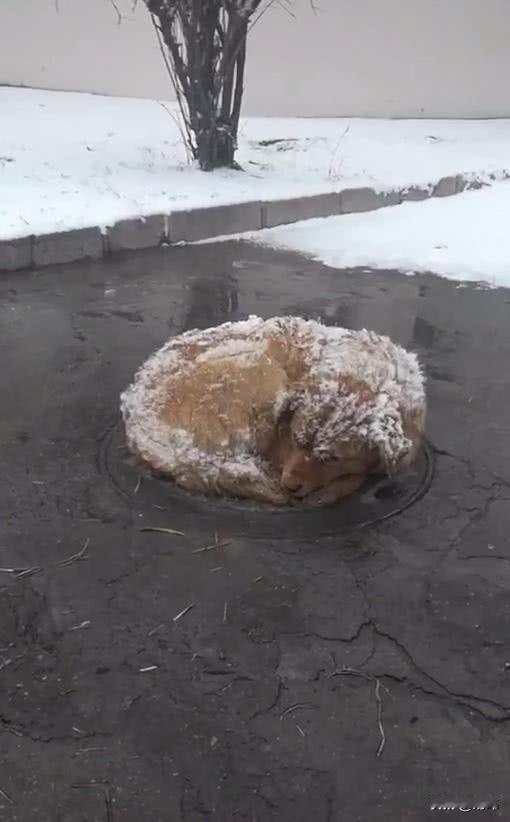 太可怜了,一只可怜的流浪狗所在的城市下了特大暴风雪,又冷又饿的它到处寻找地方避雪,可惜这冰冷的城市根本找不到它的容身之处。 它的状态越来越差,渐渐的连路都走不动了,突然它看到一条马路上有个窨井盖,上面正冒着热气,这让它看到了希望,于是立刻赶了过去趴在了上面,果然有些许热气从窨井盖冒出来,可根本抵御不了低温和暴雪,很快它就陷入了昏迷。 第二天,一位小姐姐看到了已经结冰的它,好心的小姐姐把它安葬在了附近的公园里,它就在这个初冬离开了这个世界。