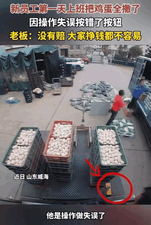 “第一天就摔了16筐!”山东威海,新员工卸鸡蛋按错遥控,尾板瞬间倾斜,18筐滑下碎成金黄地毯。小伙愣在原地,连声“我赔”,老板宫女士却一句“先去下个点,我来收”,把赔偿挡了回去。网友直呼:这老板,把“格局”两个字写进了仓库! 当天宫女士在超市仓库等卸货,新员工误把“下降”按成“倾斜”,整车鸡蛋瞬间滑落。18筐里只捡出两筐完好,另两筐半碎送养殖场当饲料,实际损失16筐,市值不到两千元。 小伙反复微信转账,宫女士每次都拒收,只回一句:“人非圣贤,第一天谁不犯错?”她让其他员工清扫玻璃碴和蛋液,安排新人直接去下一个送货点,照常算工时。 视频被同事随手发出,点赞一夜破十万。评论区里,高赞只有八个字:“岁岁平安,老板福报。” 对于这件事情,大家有什么看法?