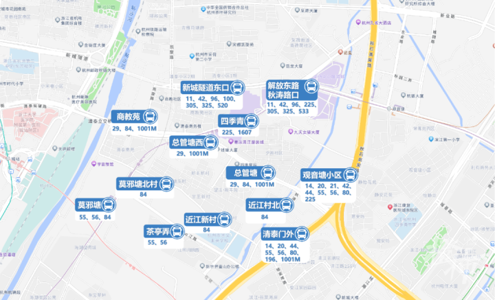 上面为大家介绍了调整走向幅度较大的3条线路,225、1001M、1607路则是不受施工影响,站点不作变动,而剩余6条原途经清泰立交桥、清泰拼宽桥的线路将调整至周边的望江立交、庆春立交、新城隧道行驶,或整体调整走向。