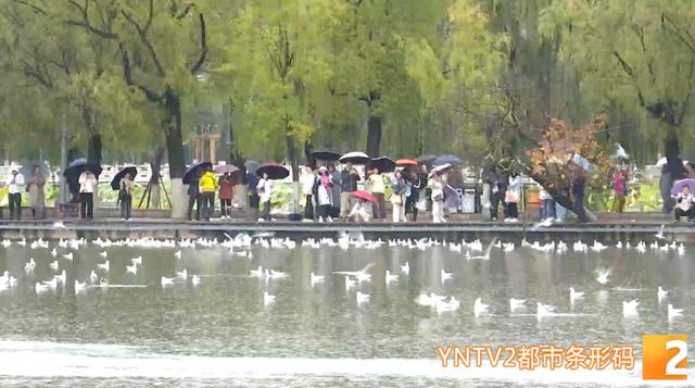 目击者曾女士:“红嘴鸥是我们的老朋友,来云南已经40年了,大家都要文明观鸥,旁边那些照相的人在阻止,我们也去阻止了她们才放手”。