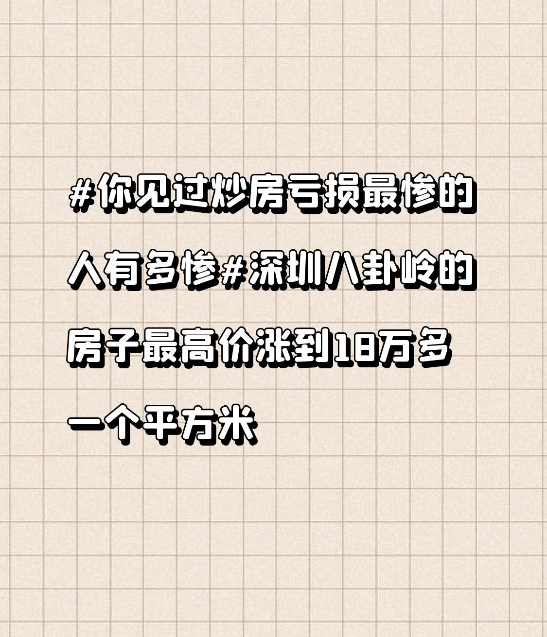 见过炒房亏惨的人,就拿深圳八卦岭来说,当年房子最高价涨到18万多一平方米,不少人眼红冲进去。有个朋友在房价接近顶峰时入手了一套,本想着转手大赚一笔。 结果楼市风向大变,八卦岭房价暴跌。他那房子现在每平跌到了七八万,直接腰斩。为了还高额房贷,他不仅掏空积蓄,还四处借钱。原本优渥的生活一去不复返,每天都在为债务发愁,头发都白了一大半。炒房有风险,盲目跟风,结局可能就像我这朋友一样惨。