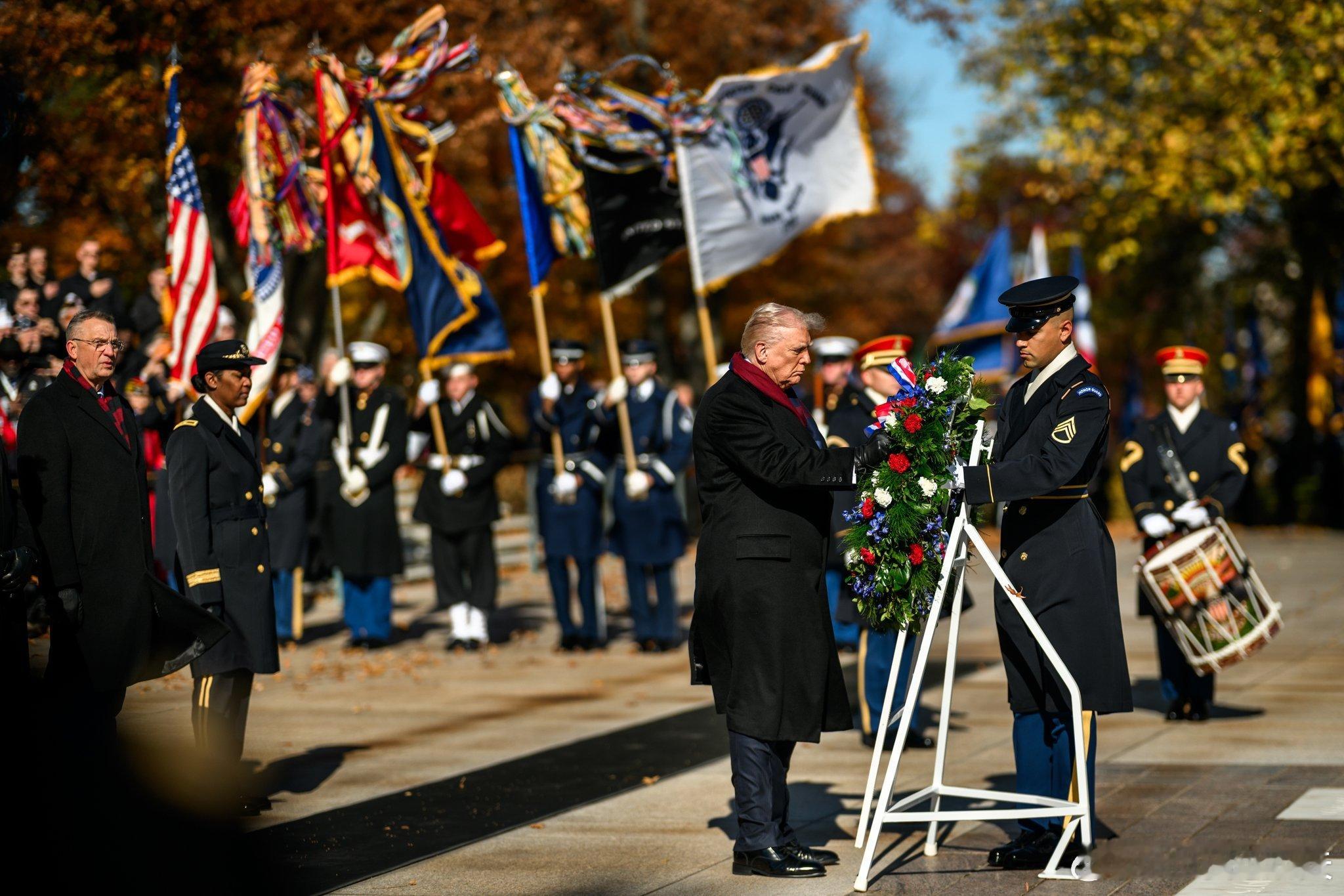 ‼️美国总统特朗普向阿灵顿国家公墓的无名烈士墓敬献花圈。
