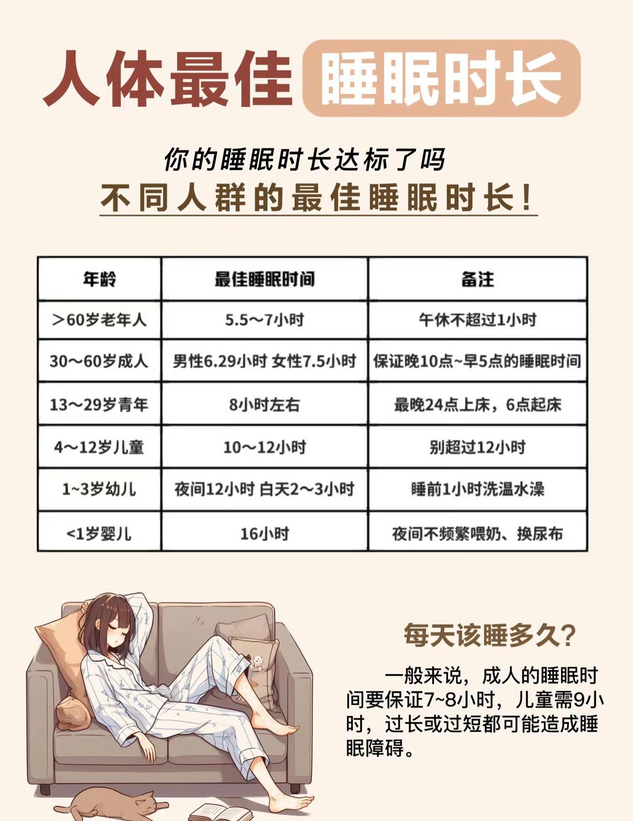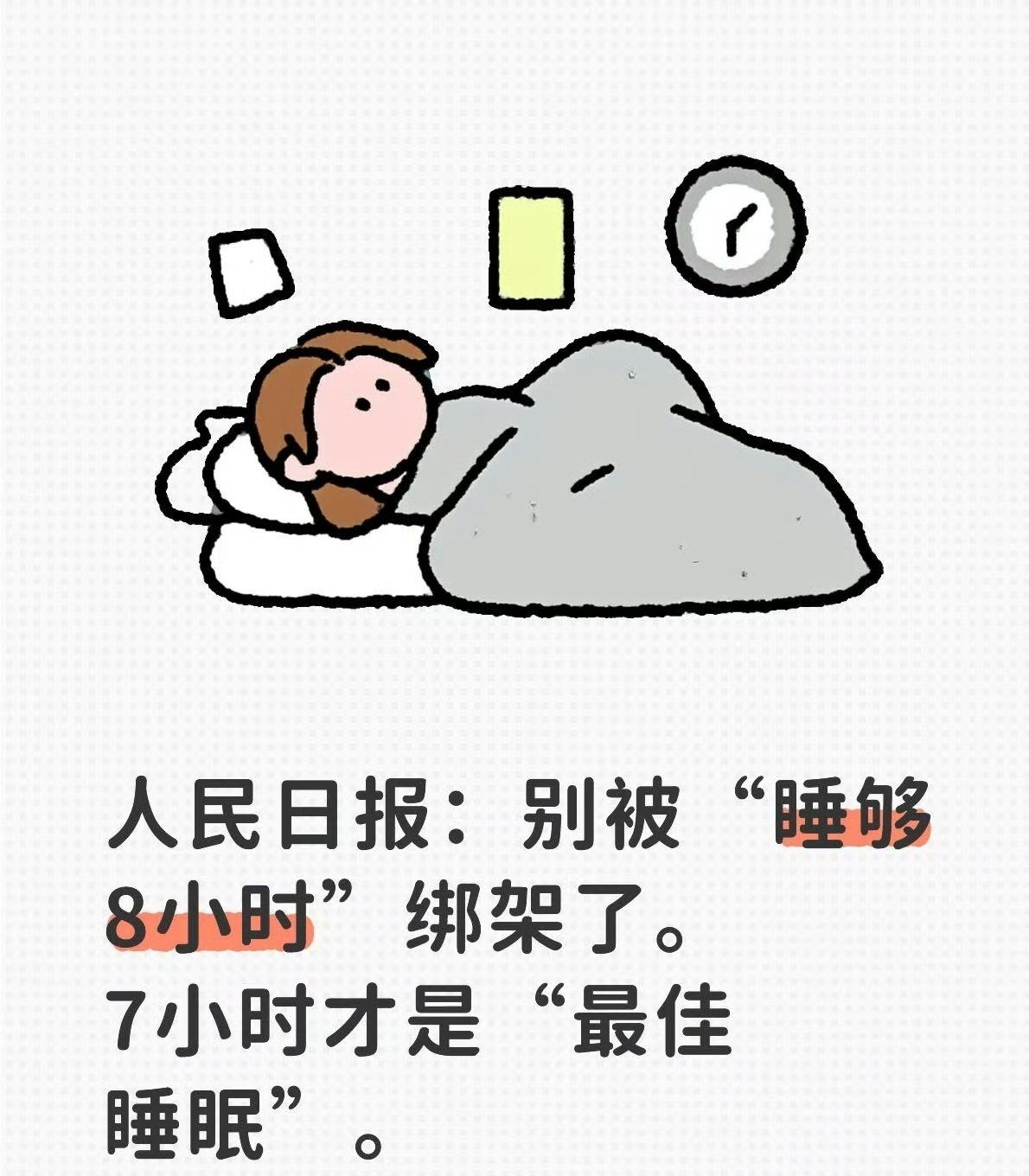 这怎么又出来个睡7小时才是黄金标准😓?超9小时竟比熬夜还伤身! 打工人真的太难了!以前被“每天必须睡够8小时”PUA,熬夜到凌晨就焦虑得睡不着;现在又刷到睡眠超9小时也可能有害,合着睡觉还得卡着闹钟,多睡一分钟都怕伤身体[捂脸] 权威研究又说了,成年人最佳睡眠时长其实是7-8小时,6小时是健康底线,超9小时就踩雷了 。美国癌症学会调查更扎心:睡6.5-7.4小时的人死亡率最低,超9小时不仅会增加25%死亡风险,还可能伤心脏、变肥胖,甚至提高痴呆和抑郁风险 ! 周末想补觉的宝子注意了,睡懒觉到中午看似舒服,实则是在给健康挖坑——血液流动变慢易形成血栓,肠胃空转伤黏膜,醒来还昏昏沉沉像“睡傻了” 。比起硬凑时长,规律作息才是王道,晚上10-11点睡、早上6-7点起,入睡快、少起夜、醒后精神足,比啥都强 ! 你平时睡多久?有没有越睡越累的经历?是熬夜党还是嗜睡星人?评论区说说你的睡眠时长,看看谁才是健康睡眠王者~ 健康睡眠 打工人作息 睡眠误区