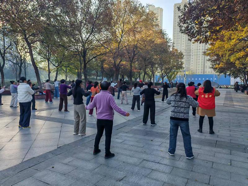 11月12日上午,蒙城县庄周街道万湖社区新时代文明实践站在逍遥公园组织开展广场舞健身活动,吸引了众多居民参与。