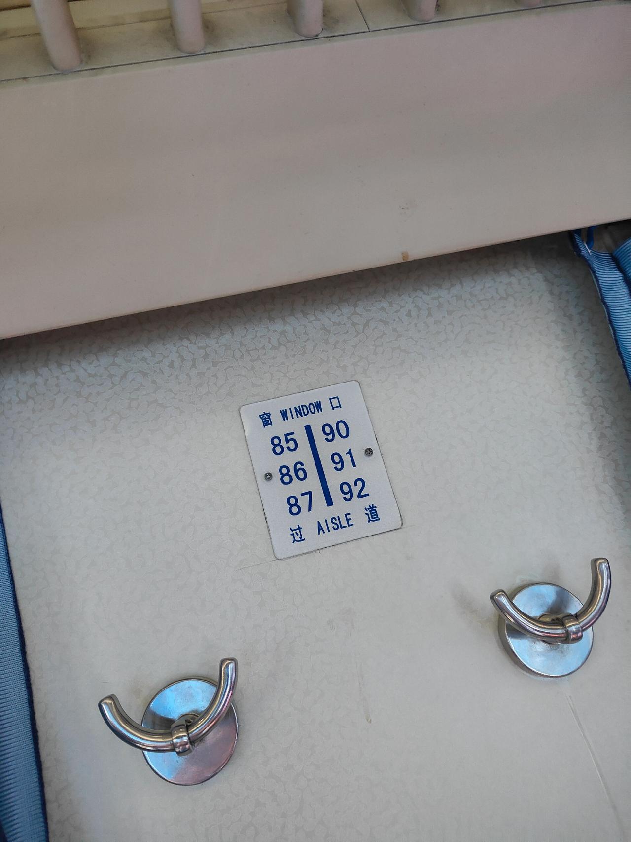 温州到青岛北K1050/K1051次 硬座车厢定员118人 座位号尾号0、4、5