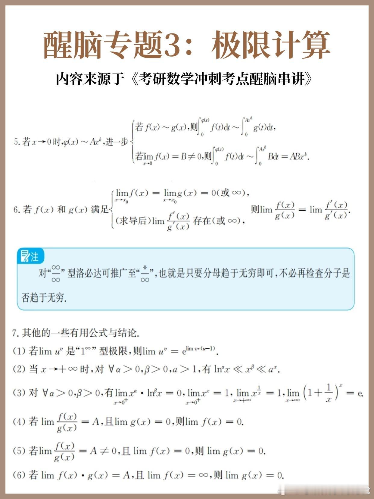考研数学30天急救计划!【醒脑专题3】:极限计算30天30个核心专题,把数学重要的公式和考法总结回顾一遍!每天背一背,写一写,不负过往,终将上岸!