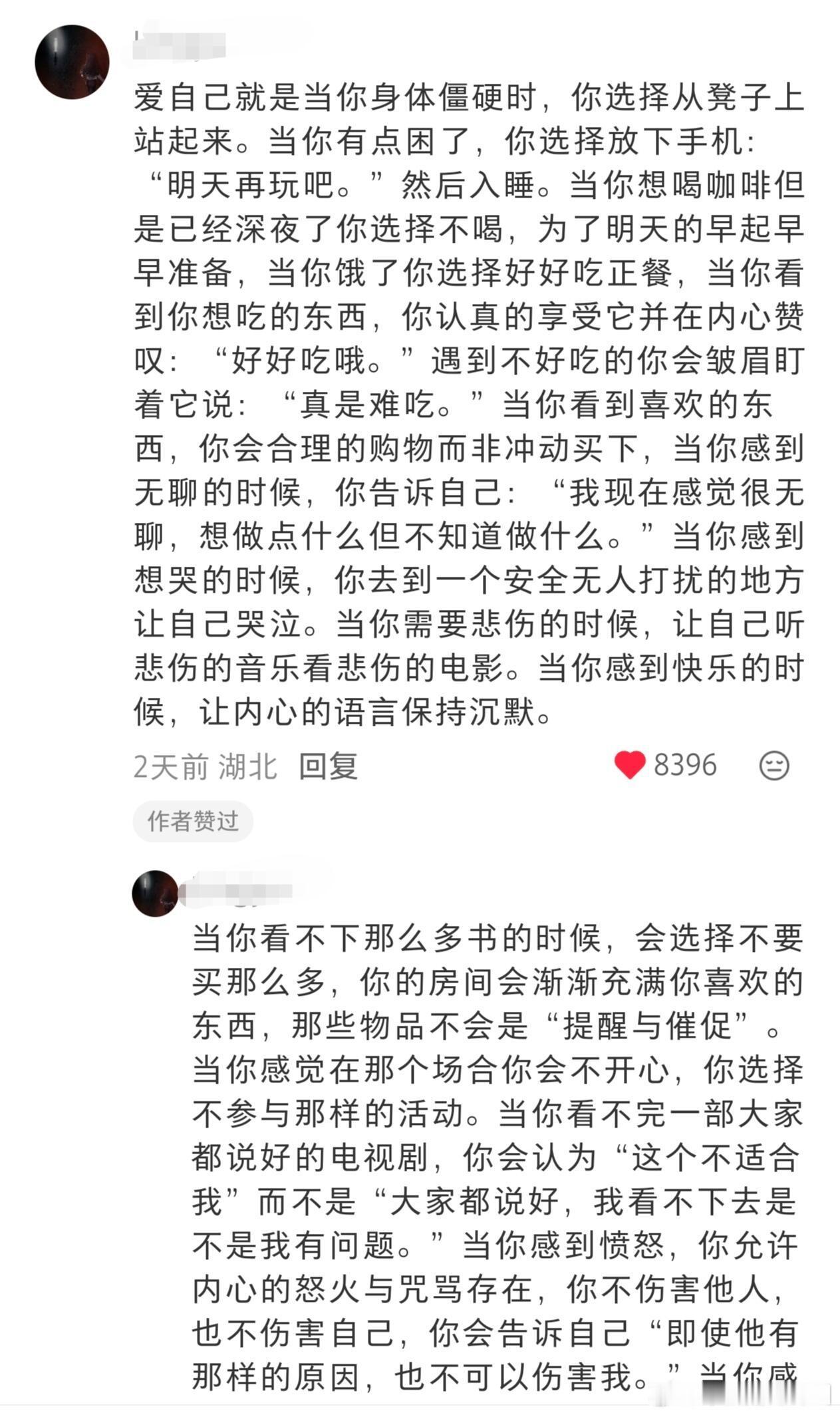 我看到的怎么爱自己的帖子最赞同的一点:日常里随身体需求行动、认真对待饮食、理性消