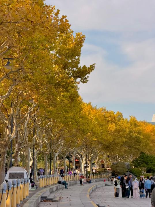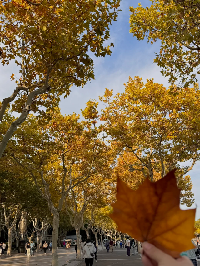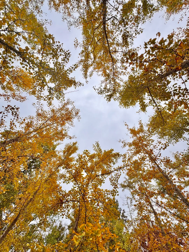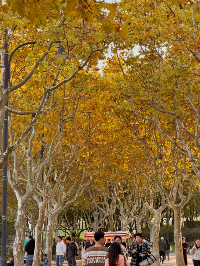 漫步其间,头顶是交错的金色枝桠,每一步都像踩在秋天的诗行里,随手一拍都是氛围感满满的秋日大片。
