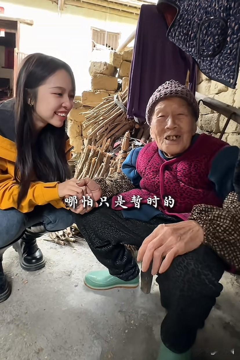 广西柳州,女生下乡收土货,在她走过一座有点破旧的土砖房子前,她看到一位老奶奶坐在小板凳上发呆。刚开始女生没有在意,在她再次路过奶奶的土房子时,她又看到奶奶坐在那里发呆。 女生忍不住停下脚步,她叫了一声奶奶。女生的叫唤声把奶奶从发呆的神游里叫了出来。老人示意女生进屋,并问女生来这里干吗呢? 女生在老人跟前蹲下来告诉她自己来村里收土货,路过看到她打声招呼。老人听了很是高兴,她拉着女生的手开始聊天。 从聊天中得知,老人今年已经九十一岁了,老伴多年前就离世,唯一的儿子患有精神病也早早逝世。因为早年给儿子治病花光了家中积蓄。 在老伴和儿子都离去后,老人也无能力重修房屋,曾经的新家就成了如今看起来破破旧旧的土砖房子。 老人一个人守着老房子,没有经济收入,日常生活来源是靠每个月的五保金。平日里做饭和冬天取暖的柴火是老人自己去山上捡。平时她吃的蔬菜都是自己种的。 虽然老人已经九十一岁,但她依然把简陋的家收拾得干净整齐。黢黑的厨房里放着有些残破的厨具,屋外她捡回来的树枝也一把一把的捆好堆放,木头也码放成堆。 虽然已经九十一高龄,但是老人的身上以及屋里都没有所谓的“老人味”。老人衣衫朴素却穿得整洁体面。 生活的拮据并没有打败老人对生活的热爱,她用尽全力去妆点以让自己过得舒心一点。 楼上堆放着以前的杂物,木制的窗户被儿子发病时砸破如今都没有修好,冬天仍旧往里灌风。那破破烂烂的痕迹都在提醒着以前发生的一切。 在聊天时,老人拉着女生的手说:谢谢你,孩子,已经很久没有人陪我这样聊天了。说完话,老人忍不住伸手抹了一把眼泪。 女生要离开时老人突然就沉默了。因为老人不舍得女生离开,可她又没有理由让女生继续留下来。可她心里难受,因为她又要开始一个人孤零零的生活了,一个人坐在门口发呆。 女生回到车上给奶奶拿了一袋大米和一瓶食用油。想到奶奶平时总是吃青菜,她又去买了猪肉。当她提着东西回去找老人时,老人有些意外,看到女生提的东西,老人又忙着说谢谢。 女生蹲下和奶奶唠嗑了一下,她想着刚才离开时奶奶因为不舍得而哭。她特意找了一些愉快的话题和奶奶聊,她想让奶奶开心一点,哪怕只是一小会。 女生和奶奶分别时,奶奶走到门口看着并挥手和女生道别。看着奶奶尽量往门外探的身子,女生忍不住哽咽。因为她离开后,奶奶又要每天依着门边,静静的发呆。 老人家里没有电视机,没有收音机,更没有手机,她平日里没有任何消遣。只是日复一日的一个人生活,一个人坐着回忆往事。 偶然有人闯入老人的生活,陪她说说话,她都会很高兴。生活的磨难没有让老人低头也没有让她哭,女生轻轻一句:您还好吗?却让老人哭红了眼。 在这一刻,女生明白,如果返乡创业能够真正帮助到像这样的老人,这一路的所有艰辛与坚持都值得。