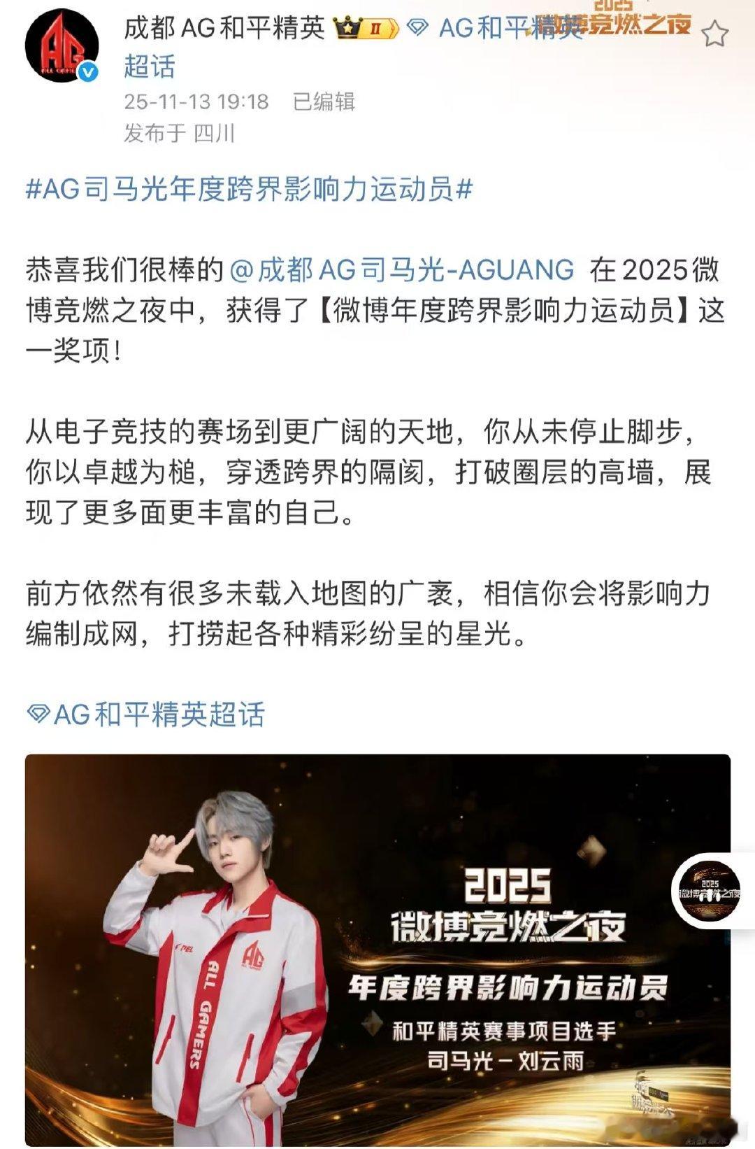 司马光获年度跨界影响力运动员,以热爱为基、以卓越为翼!多面魅力惊艳全场!