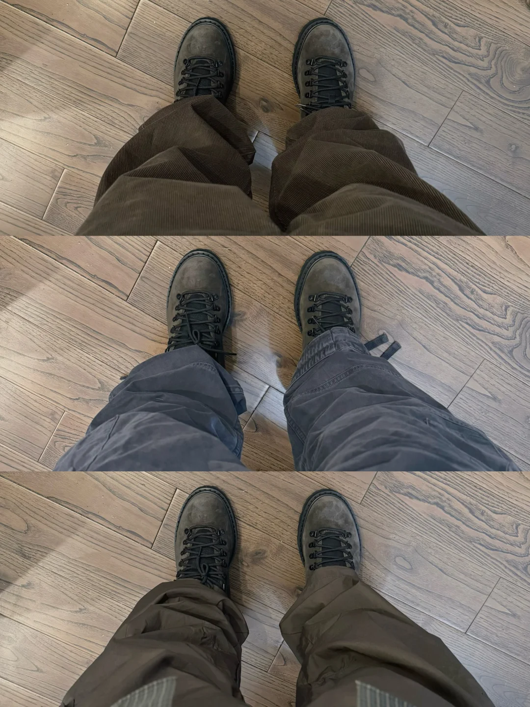 🥾秋冬鞋靴穿搭,除了大黄靴,登山靴也是不错的选择,低帮更容易匹配裤装,整体户外工装风毫不费力 . —————— . 1️⃣蓝色法工裤:Expensive Taste 2️⃣棕色工装裤:Uniqlo :C 3️⃣棕色灯芯绒:Uniqlo U 4️⃣水洗工装裤:Massulti . —————— . ✏️本人 178cm75kg // 球鞋尺码 265mm . 💭以上均为个人观点,不喜勿喷,欢迎讨论。