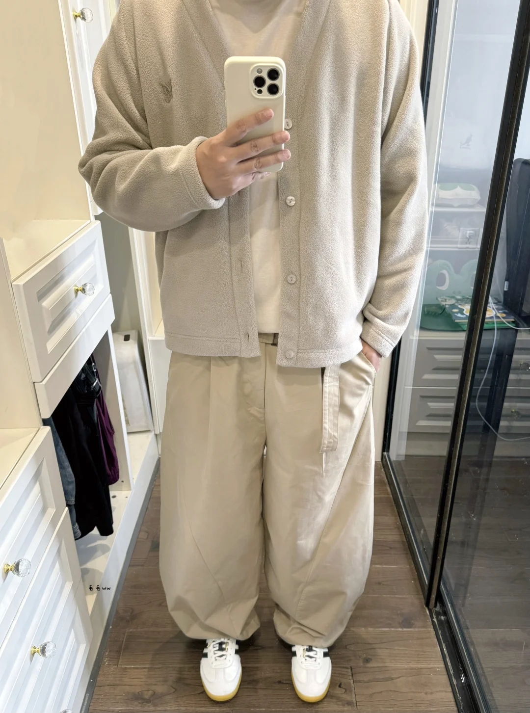 摇粒绒开衫|米色系穿搭